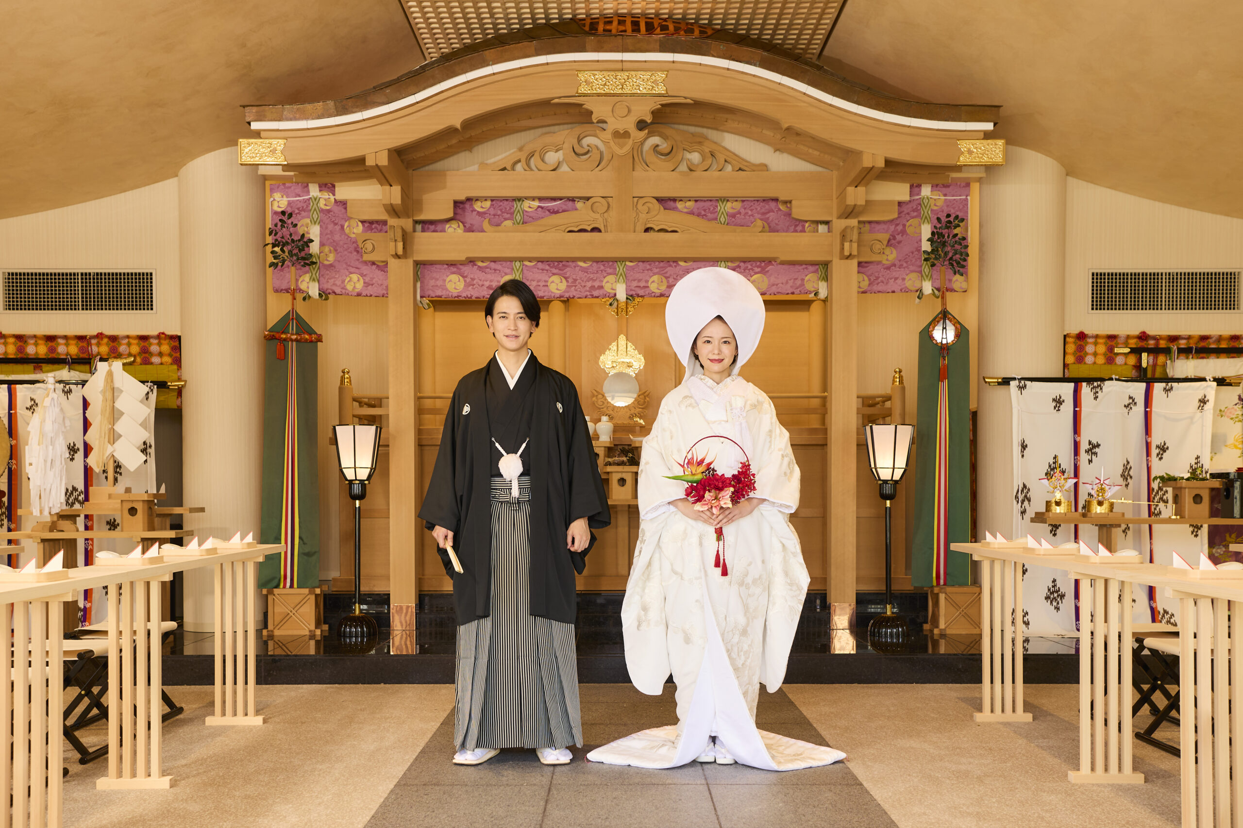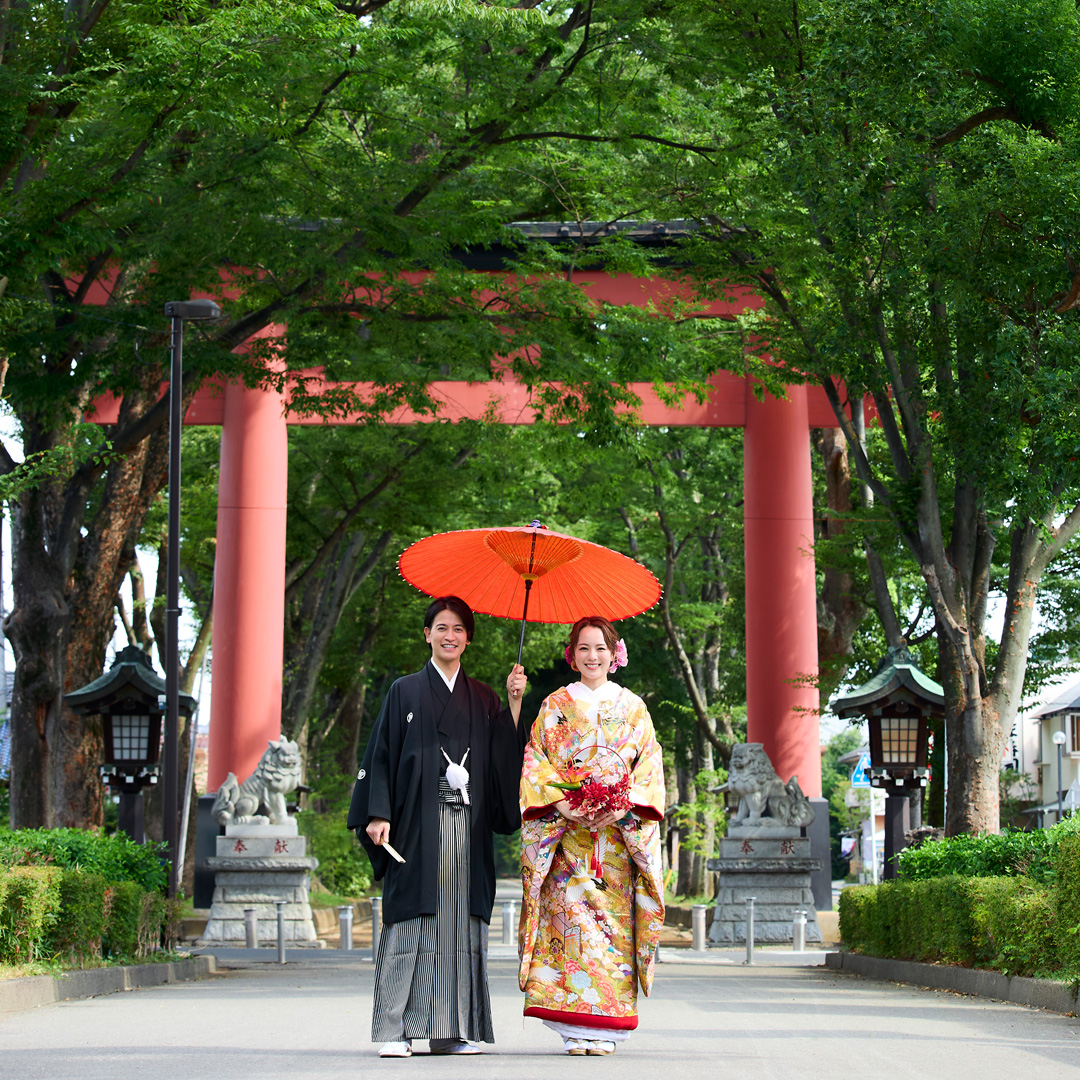 武蔵一宮氷川神社様より分祀された、由緒正しき神殿で神前式が叶う。